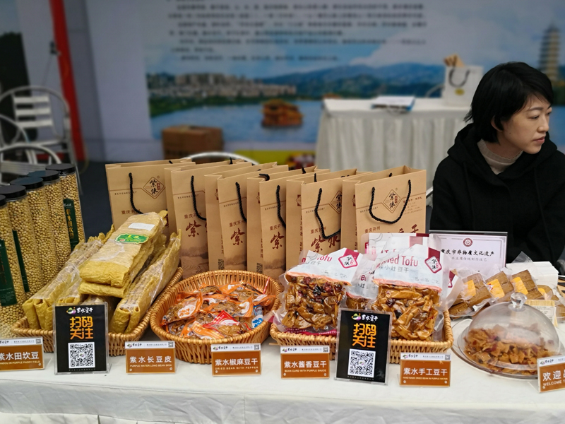 11月14日,重慶紫水豆制品有限公司參展2019年重慶全球旅行商大會。公司旗下“紫水豆干”品牌作為旅游商品受到現場觀展人員的喜愛。